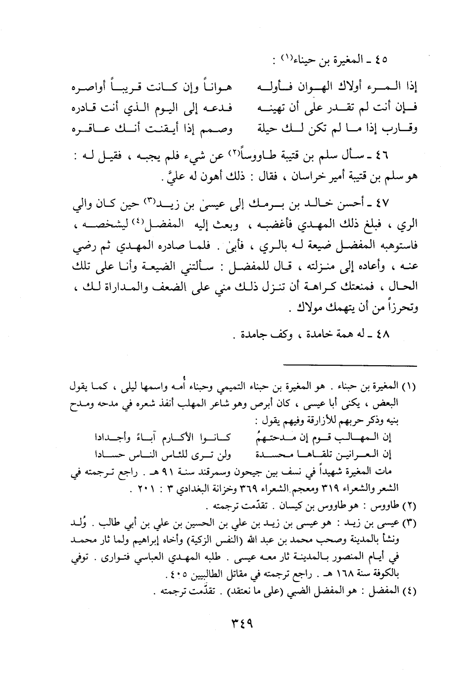47- أحسن خالد بن برمك إلى عيسى بن زيد «3» حين كان والي الري، فبلغ ذلك المهدي فأغضبه، وبعث إليه المفضل»