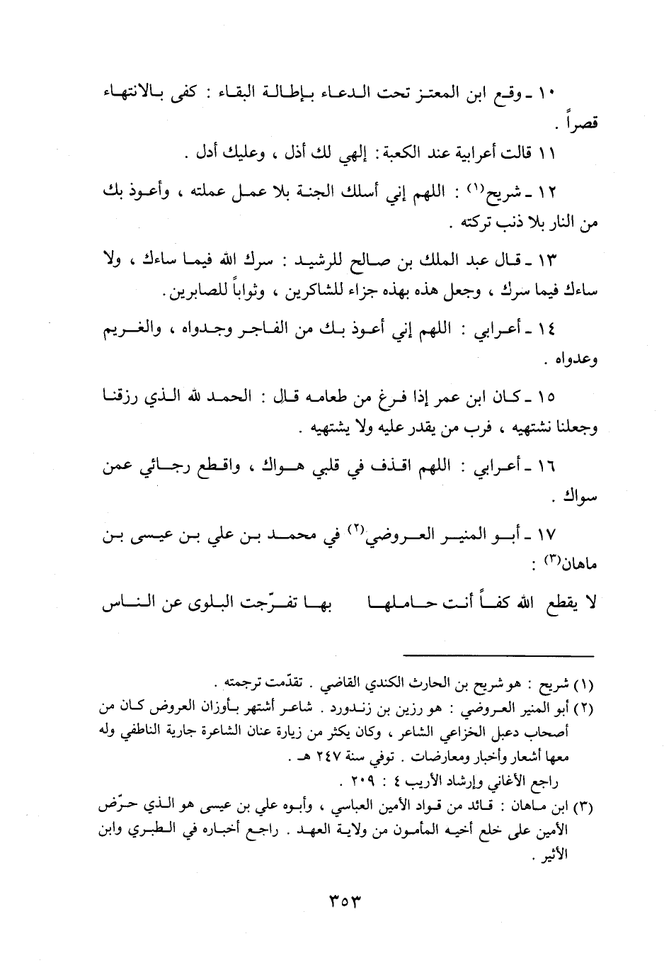 12- شريح «1» : اللهم إني أسلك الجنة بلا عمل عملته، وأعوذ بك من النار بلا ذنب تركته.