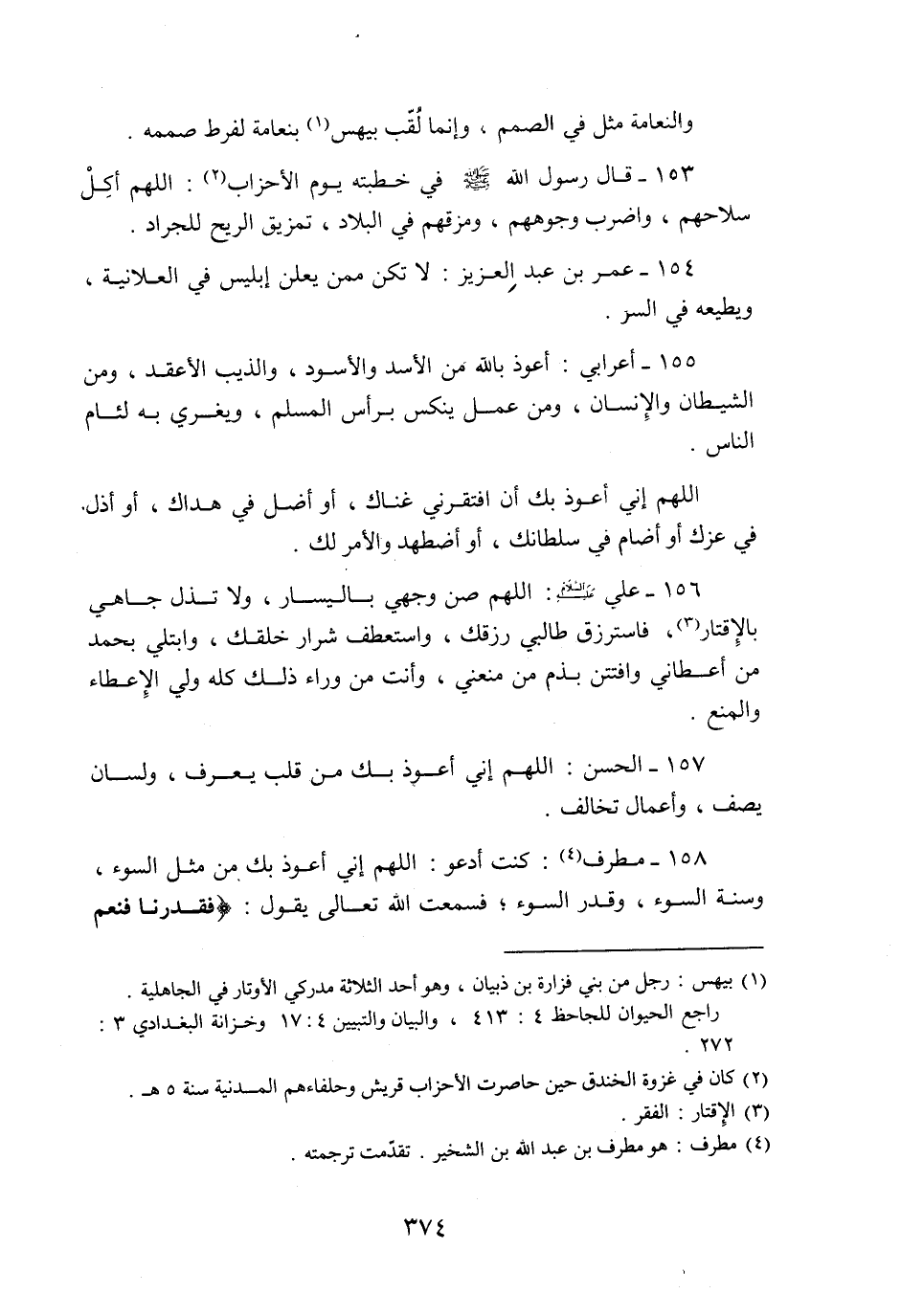 158- مطرف «4» : كنت أدعو: اللهم إني أعوذ بك من مثل السوء، وسنة السوء، وقدر السوء، فسمعت الله تعالى يقول: فَقَدَرْنا فَنِعْمَ