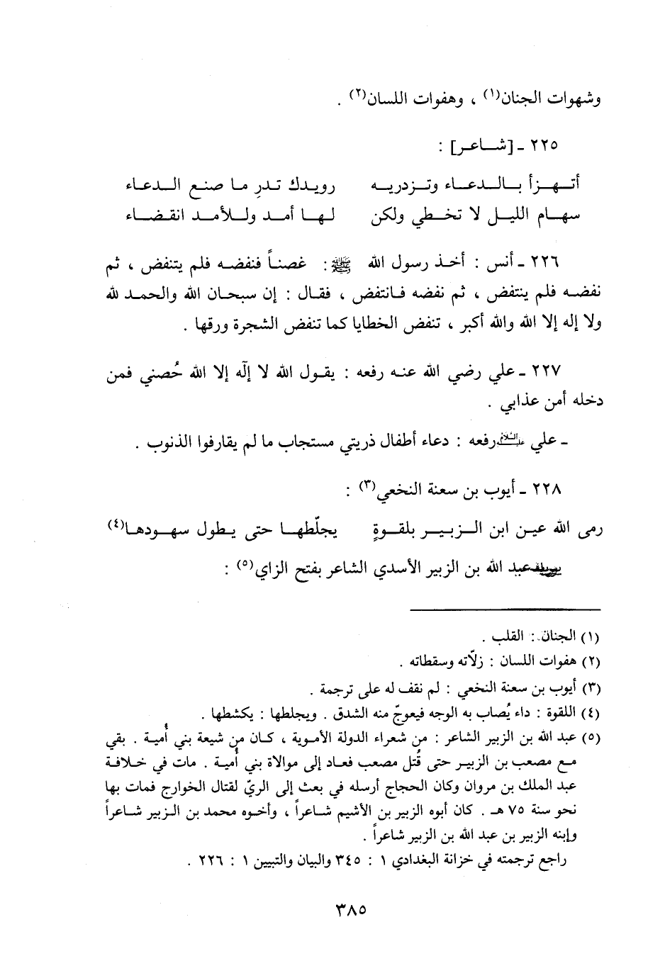 226- أنس: أخذ رسول الله صلّى الله عليه وسلّم: غصنا فنفضه فلم يتنفض، ثم نفضه فلم ينتفض، ثم نفضه فانتفض، فقال: إن سبحان الله والحمد لله ولا إله إلا الله والله أكبر، تنفض الخطايا كما تنفض الشجرة ورقها.