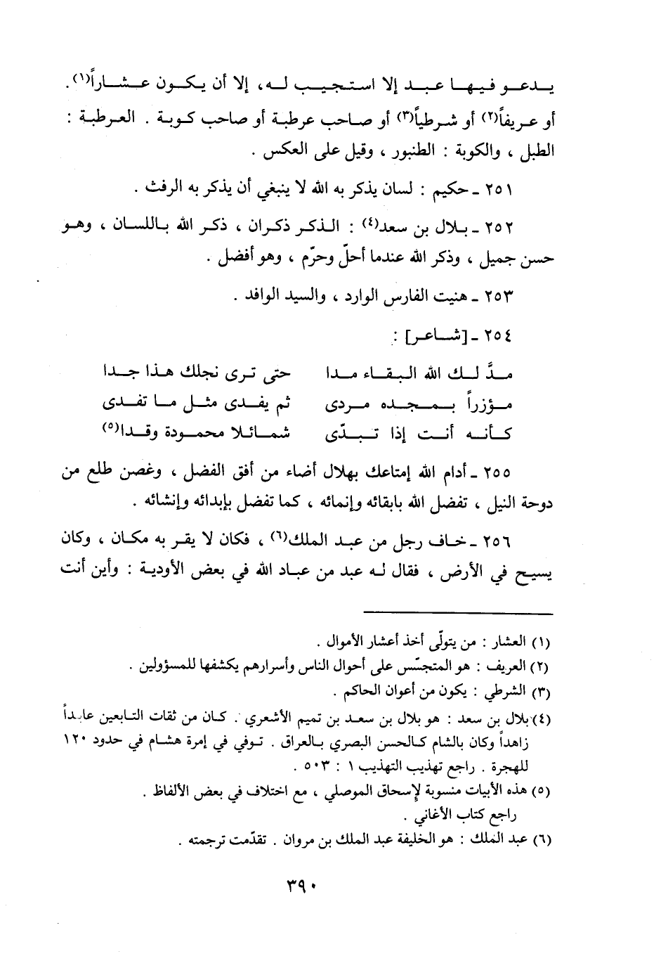 252- بلال بن سعد «4» : الذكر ذكران، ذكر الله باللسان، وهو حسن جميل، وذكر الله عندما أحلّ وحرّم، وهو أفضل.