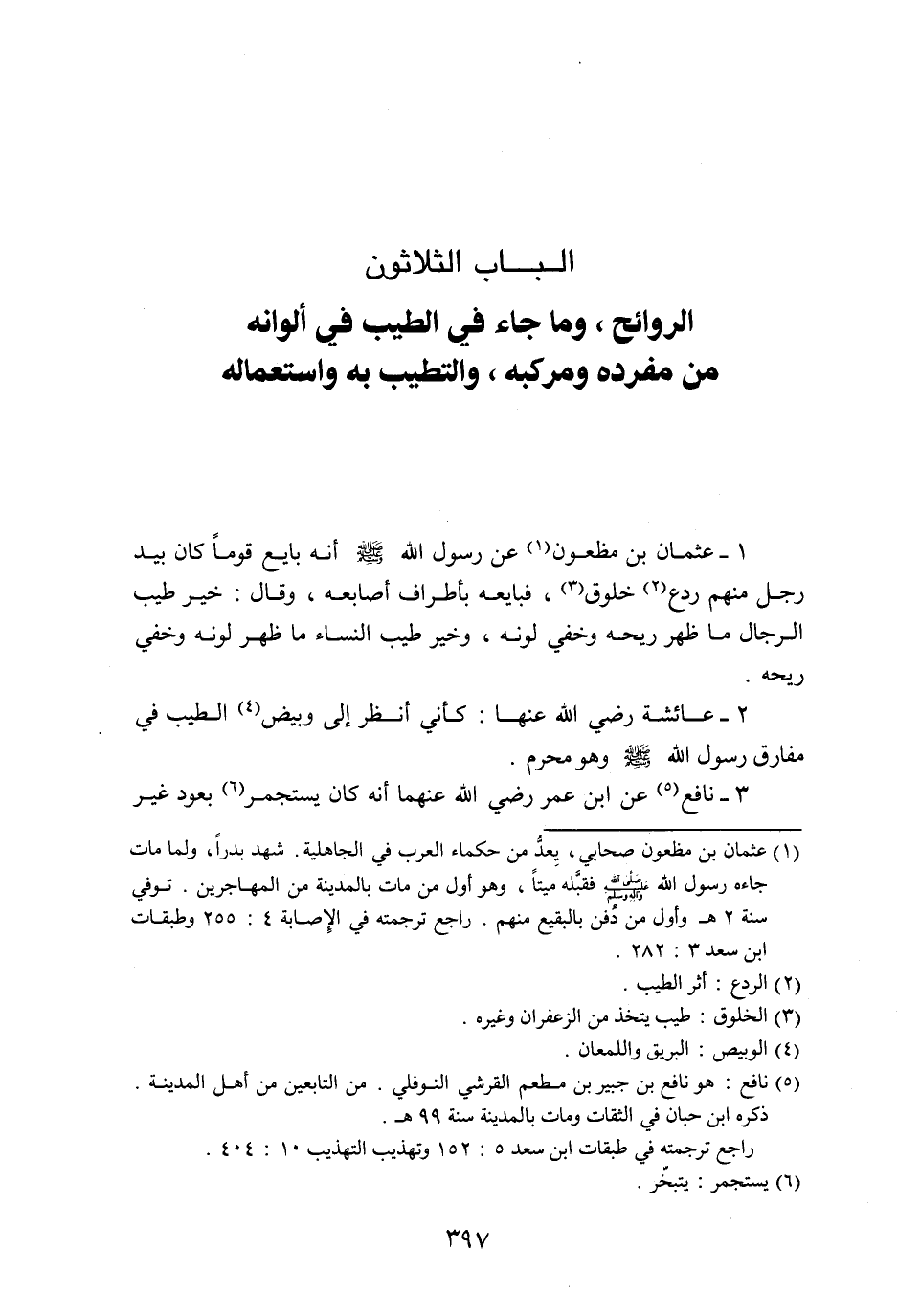الباب الثلاثون الروائح، وما جاء في الطيب في ألوانه من مفرده ومركبه، والتطيب به واستعماله