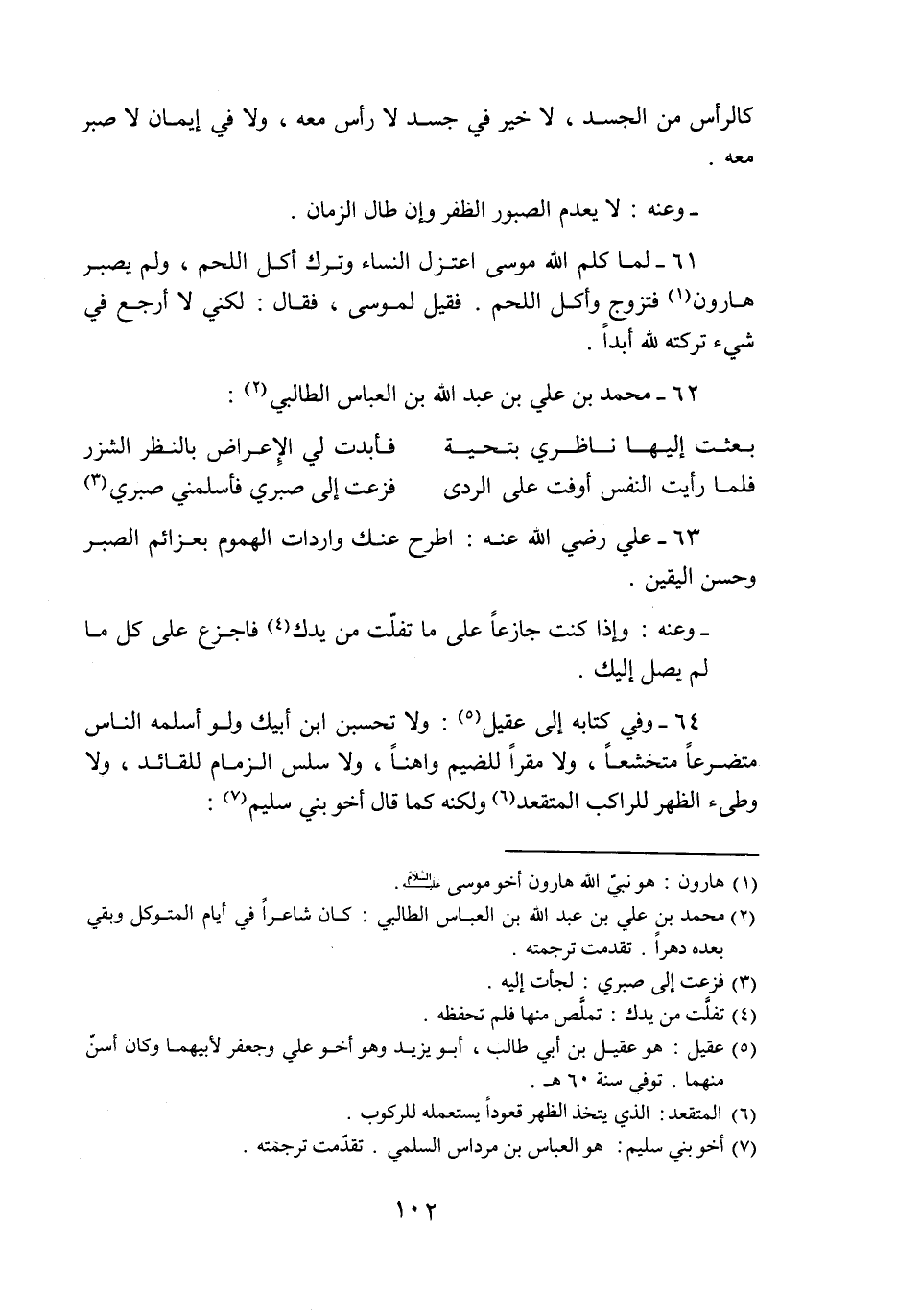 63- علي رضي الله عنه: اطرح عنك واردات الهموم بعزائم الصبر وحسن اليقين.