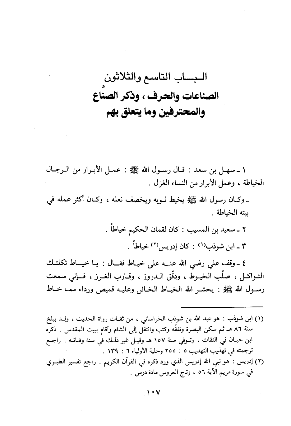 1- سهل بن سعد: قال رسول الله صلّى الله عليه وآله وسلّم: عمل الأبرار من الرجال الخياطة، وعمل الأبرار من النساء الغزل.