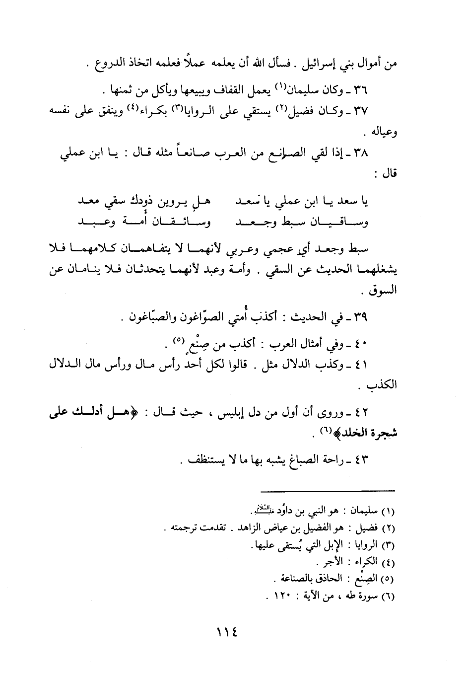 36- وكان سليمان «1» يعمل القفاف ويبيعها ويأكل من ثمنها.