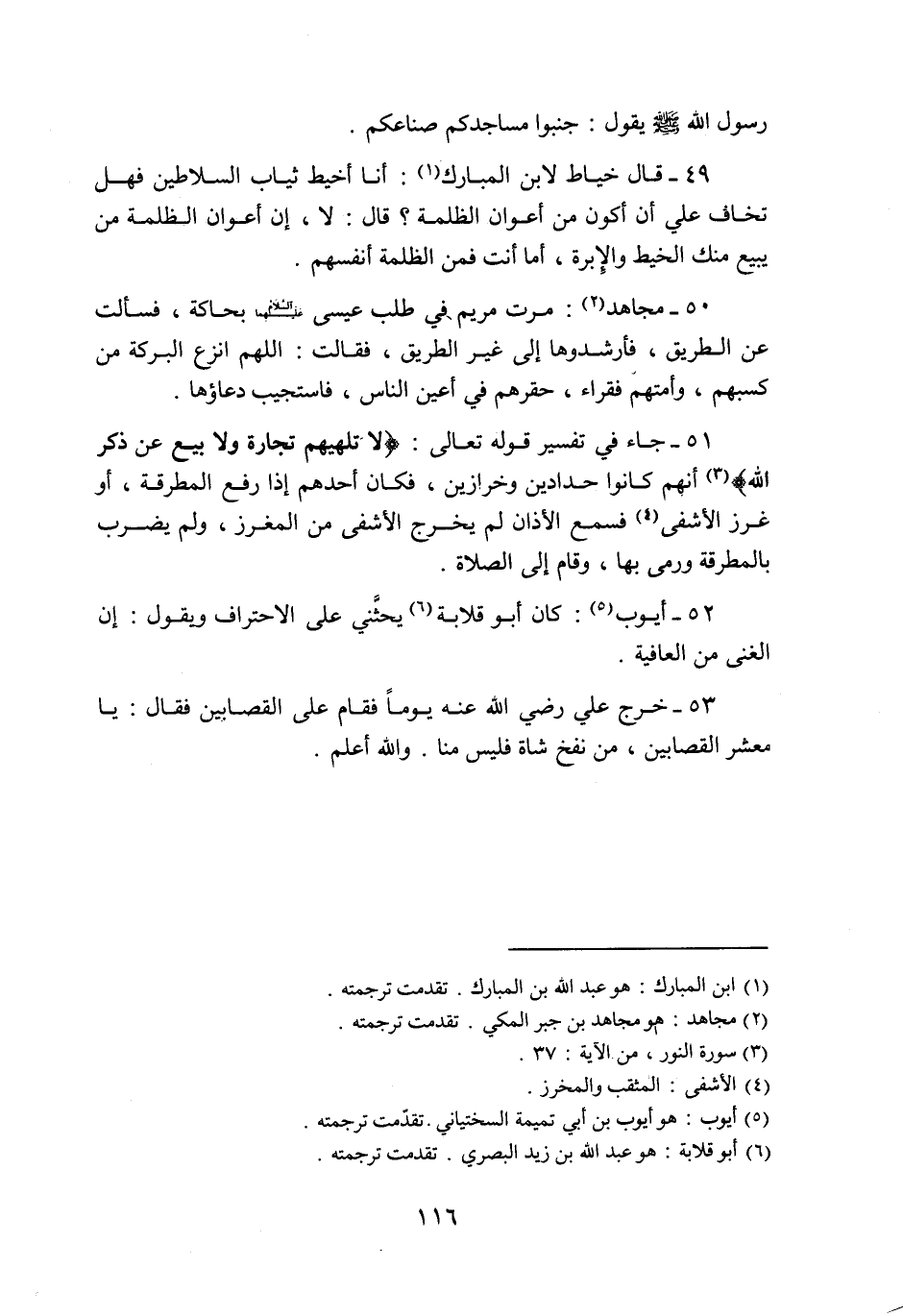 51- جاء في تفسير قوله تعالى: لا تُلْهِيهِمْ تِجارَةٌ وَلا بَيْعٌ عَنْ ذِكْرِ اللَّهِ
