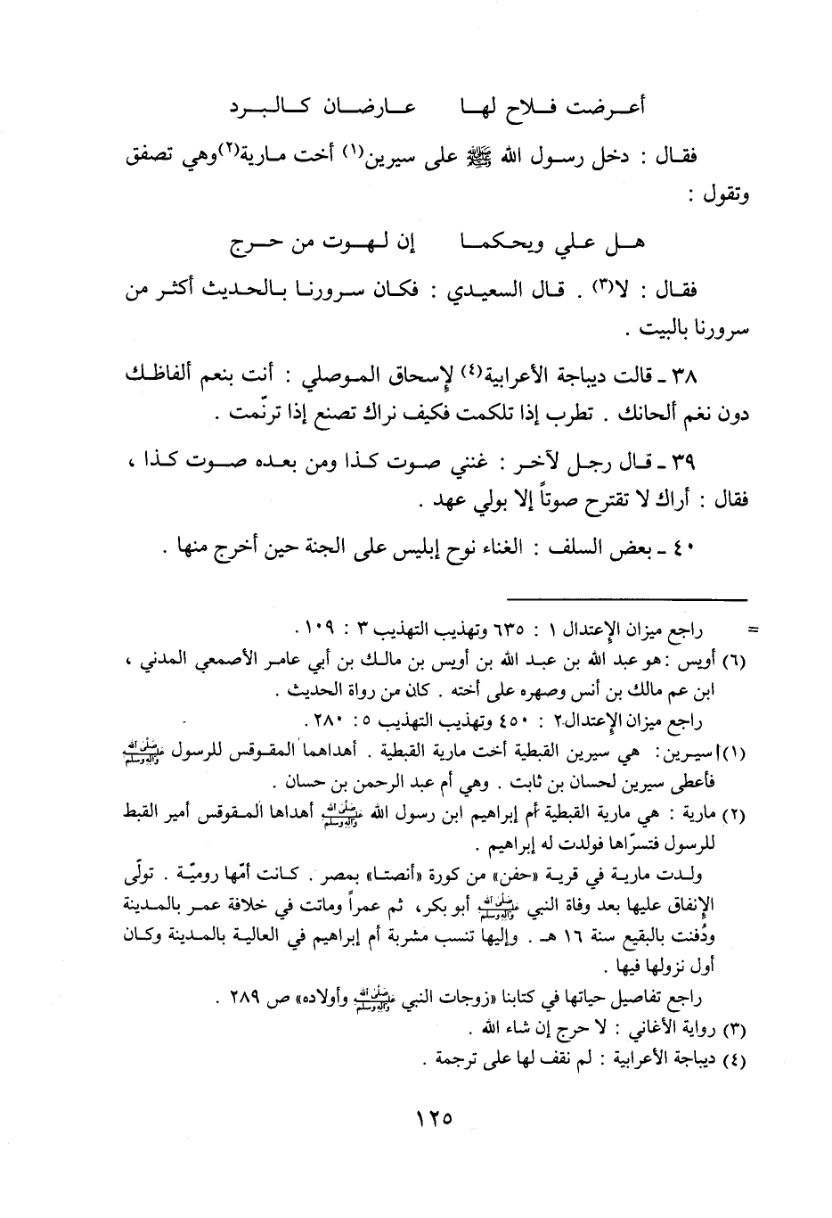 فقال: دخل رسول الله صلّى الله عليه وسلّم على سيرين «1» أخت مارية «2» وهي تصفق وتقول: