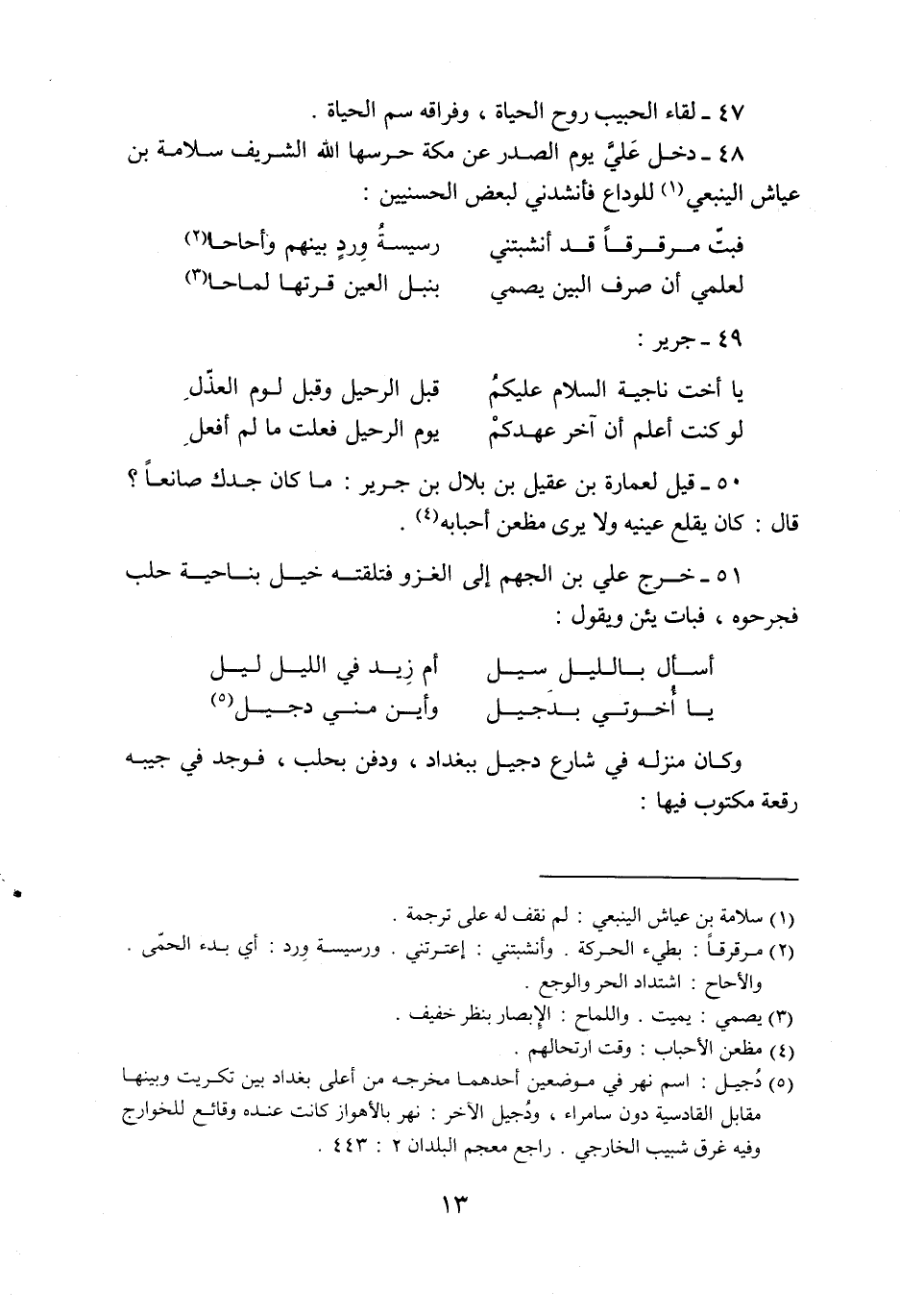 51- خرج علي بن الجهم إلى الغزو فتلقته خيل بناحية حلب فجرحوه، فبات يئن ويقول: