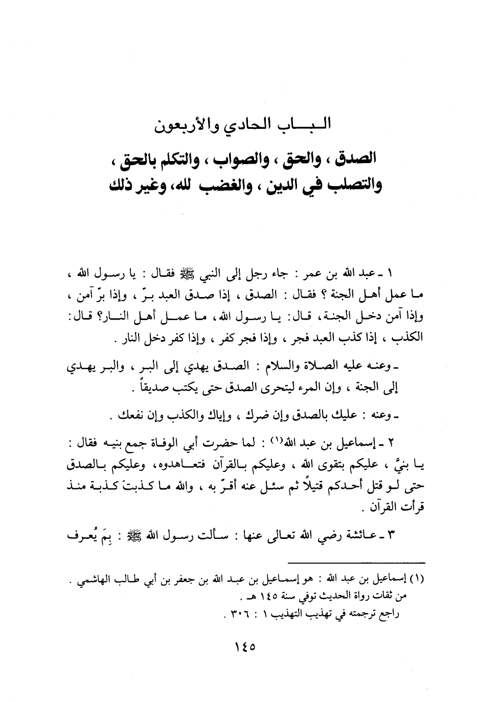 الباب الحادي والأربعون الصدق، والحق، والصواب، والتكلم بالحق، والتصلب في الدين، والغضب لله، وغير ذلك