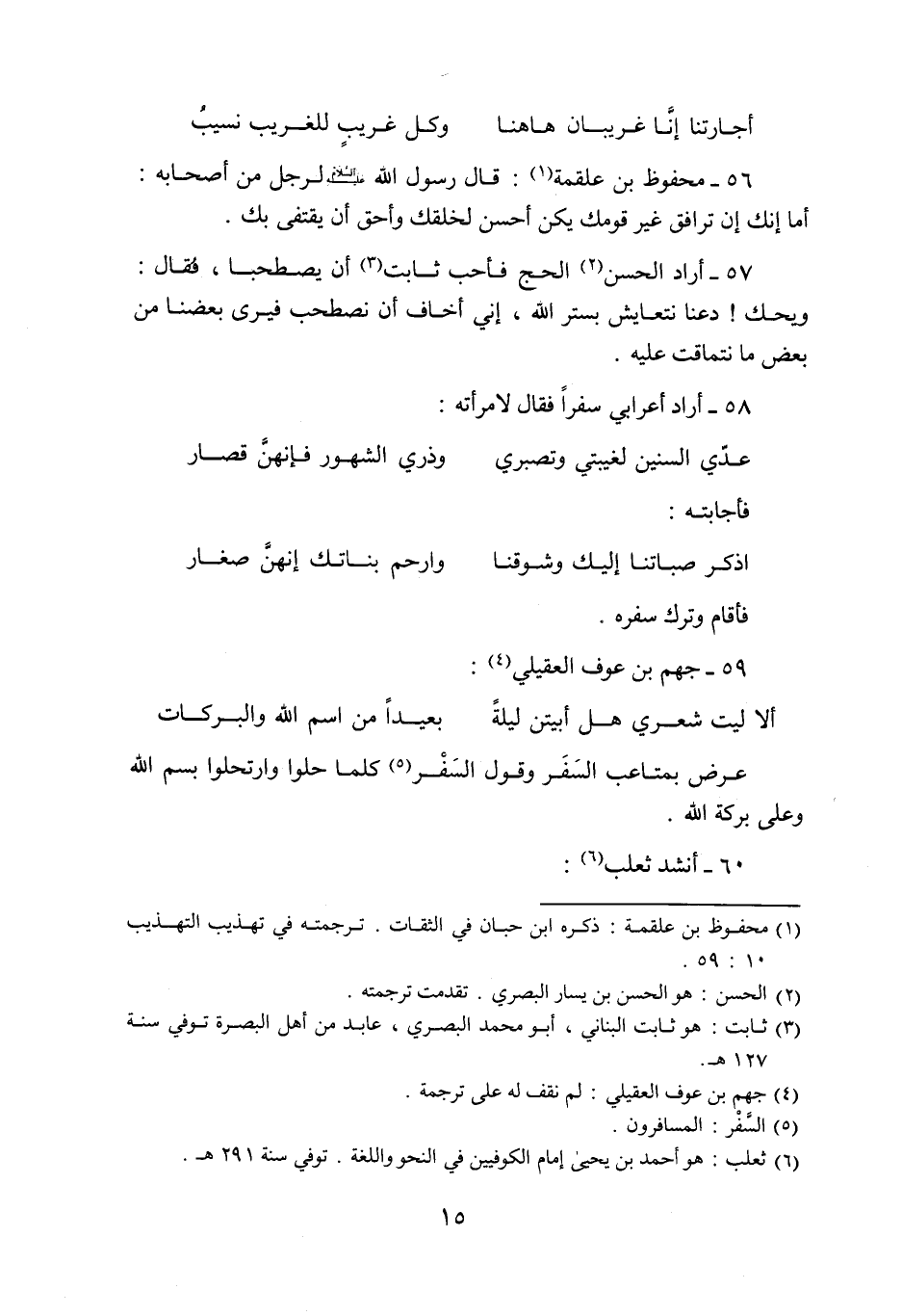 57- أراد الحسن «2» الحج فأحب ثابت «3» أن يصطحبا، فقال: