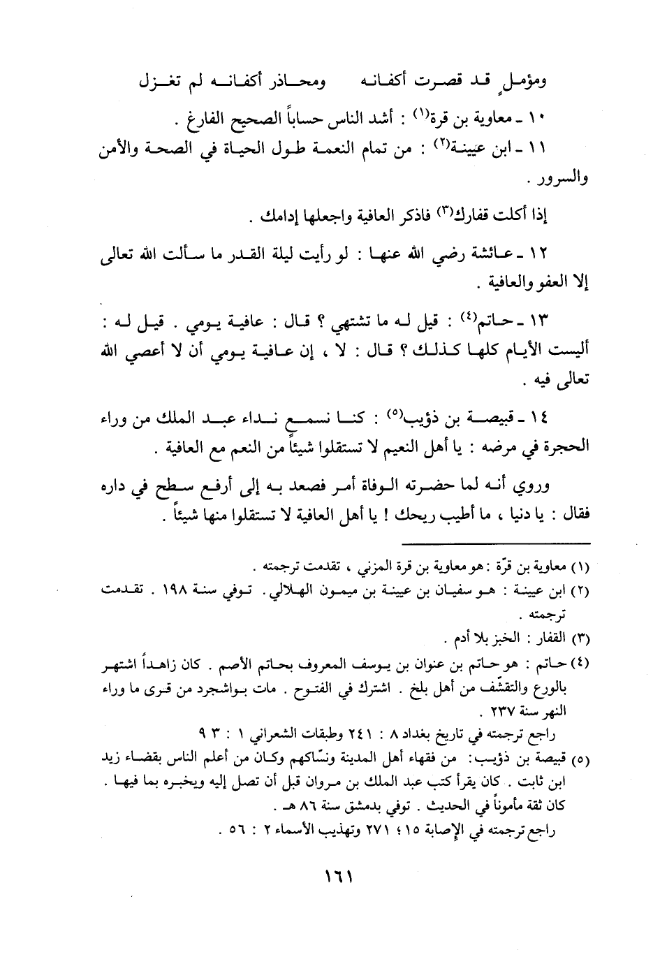 11- ابن عيينة «2» : من تمام النعمة طول الحياة في الصحة والأمن والسرور.