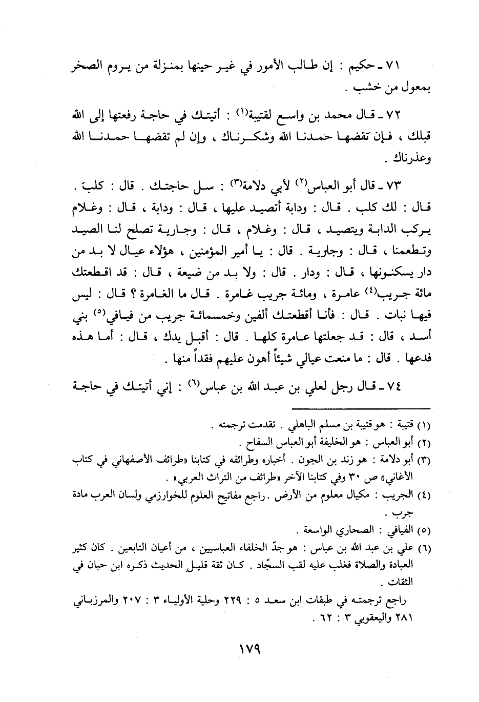 73- قال أبو العباس «2» لأبي دلامة «3» : سل حاجتك. قال: كلب.
