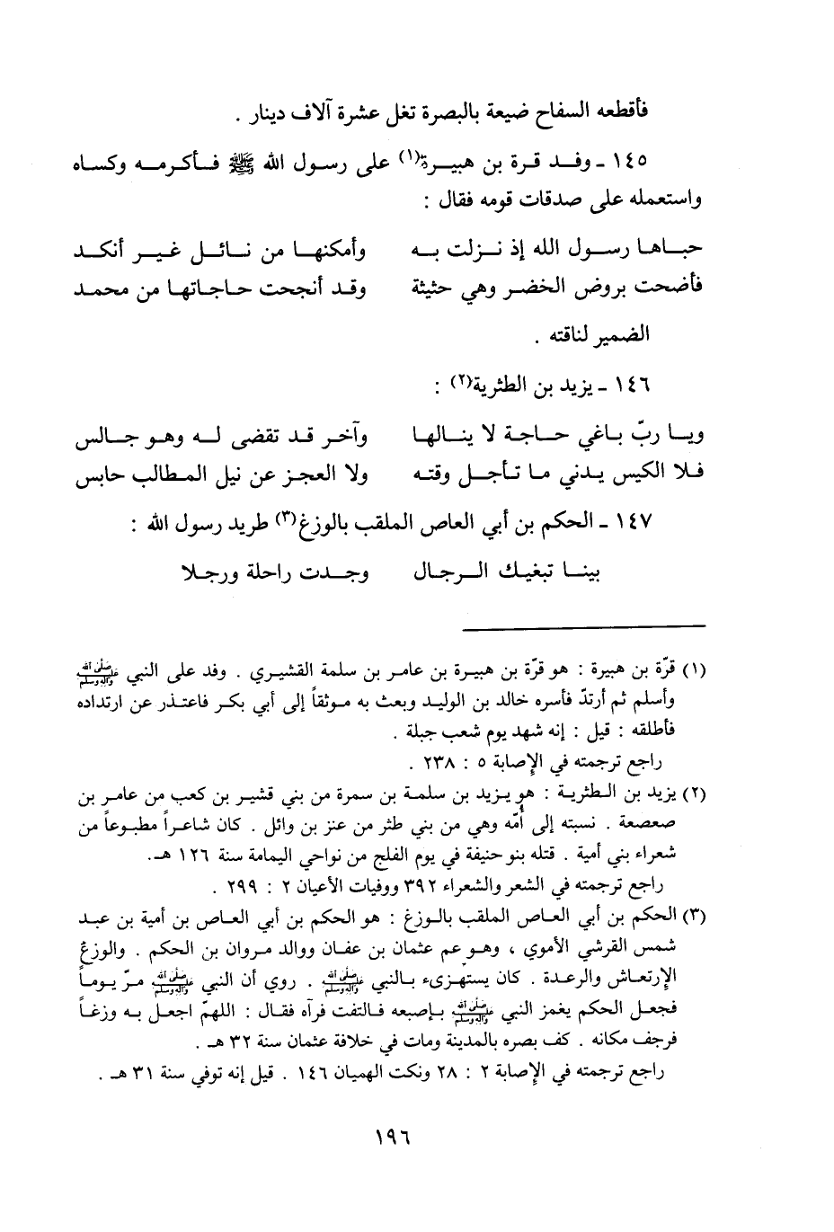 145- وفد قرة بن هبيرة «1» على رسول الله صلّى الله عليه وسلّم فأكرمه وكساه واستعمله على صدقات قومه فقال: