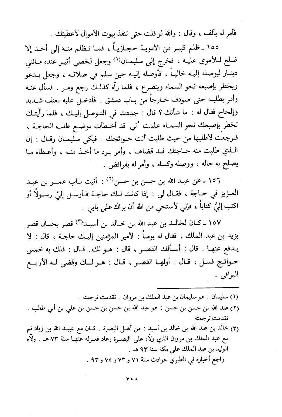 156- عن عبد الله بن حسن بن حسن «2» : أتيت باب عمر بن عبد العزيز في حاجة، فقال لي: إذا كانت لك حاجة فأرسل إليّ رسولا أو اكتب إليّ كتابا، فإني لأستحي من الله أن يراك على بابي.