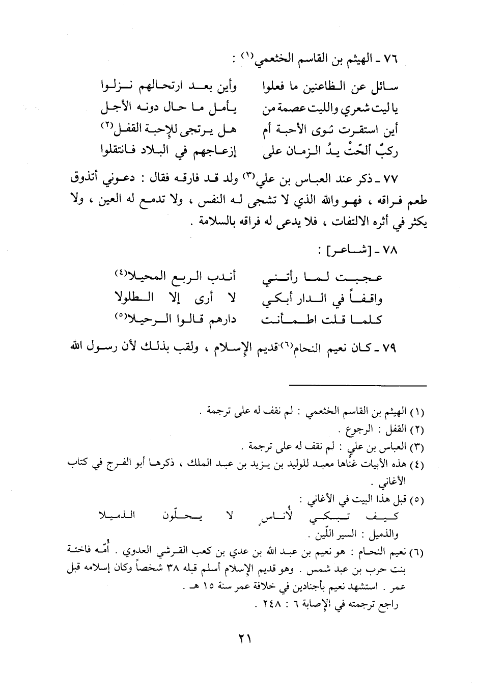 79- كان نعيم النحام «6» قديم الإسلام، ولقب بذلك لأن رسول الله