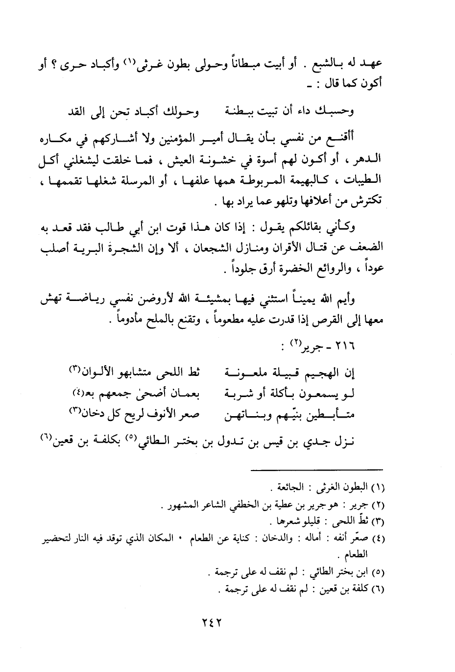 عهد له بالشبع. أو أبيت مبطانا وحولى بطون غرثى «1» وأكباد حرى؟ أو أكون كما قال:-