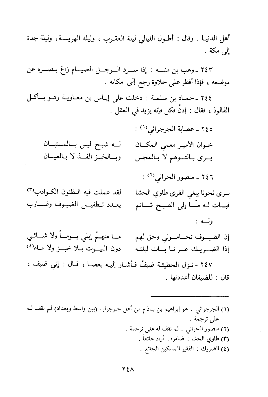 247- نزل الحطيئة ضيف فأشار إليه بعصا، قال: إني ضيف، قال: للضيفان أعددتها.