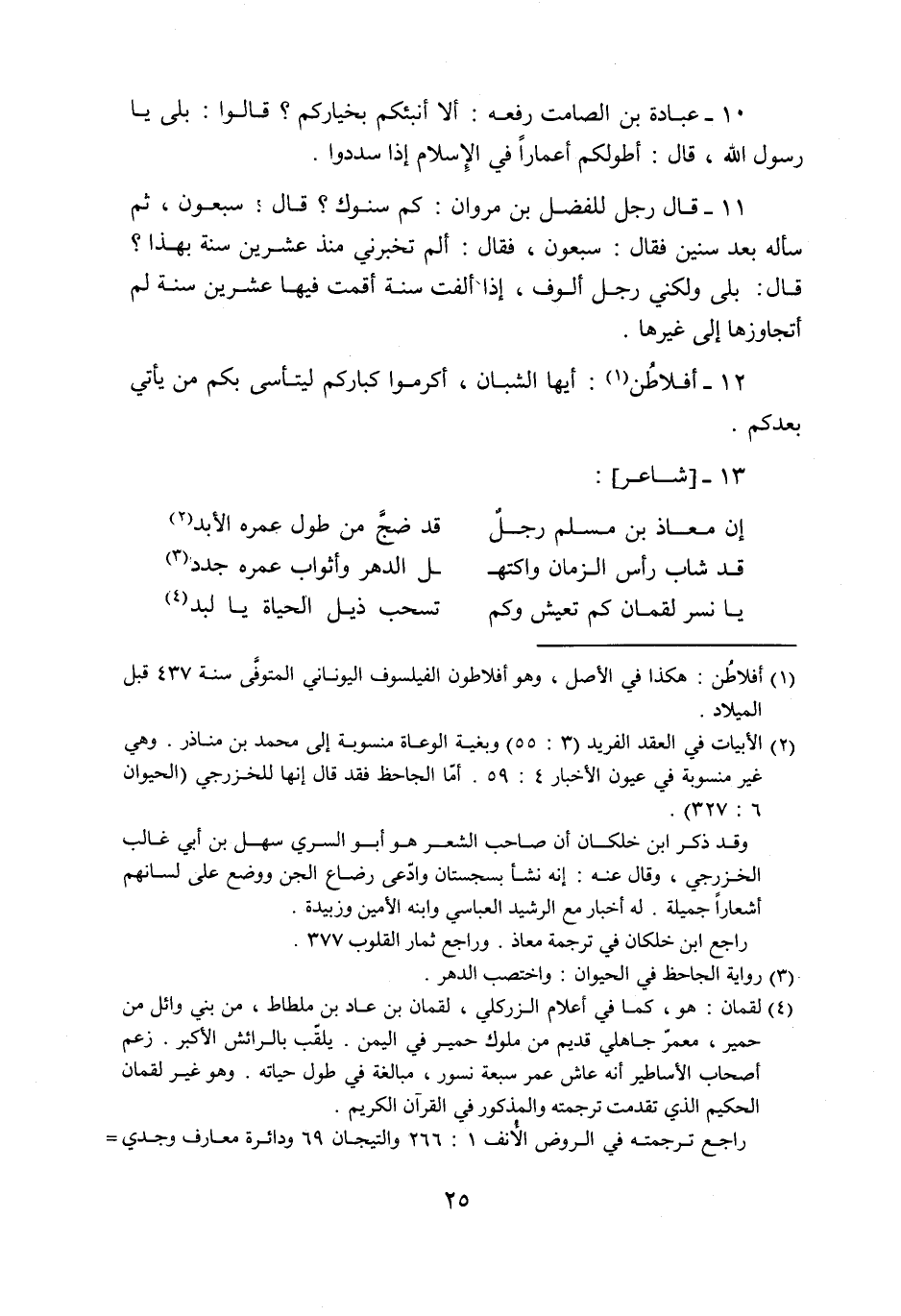 11- قال رجل للفضل بن مروان: كم سنوك؟ قال: سبعون، ثم سأله بعد سنين فقال: سبعون، فقال: ألم تخبرني منذ عشرين سنة بهذا؟