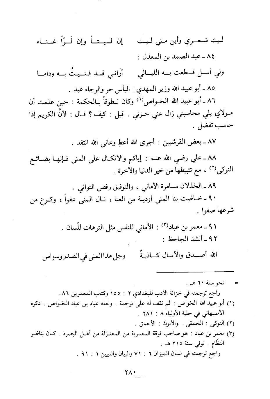 91- معمر بن عباد «3» : الأماني للنفس مثل الترهات للّسان.