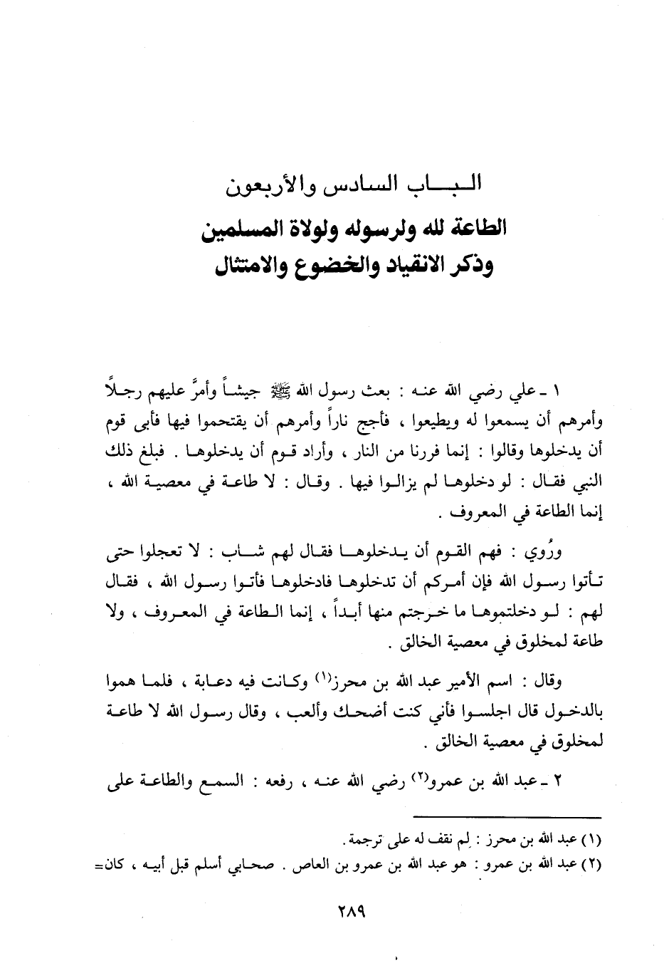 2- عبد الله بن عمرو «2» رضي الله عنه، رفعه: السمع والطاعة على