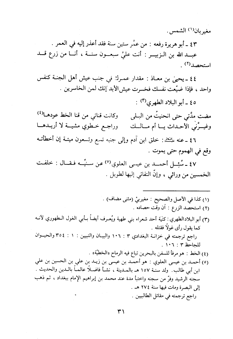 عن سنّيه فقال: خلفت الخمسين من ورائي، وإنّ التفاتي إليها لطويل.