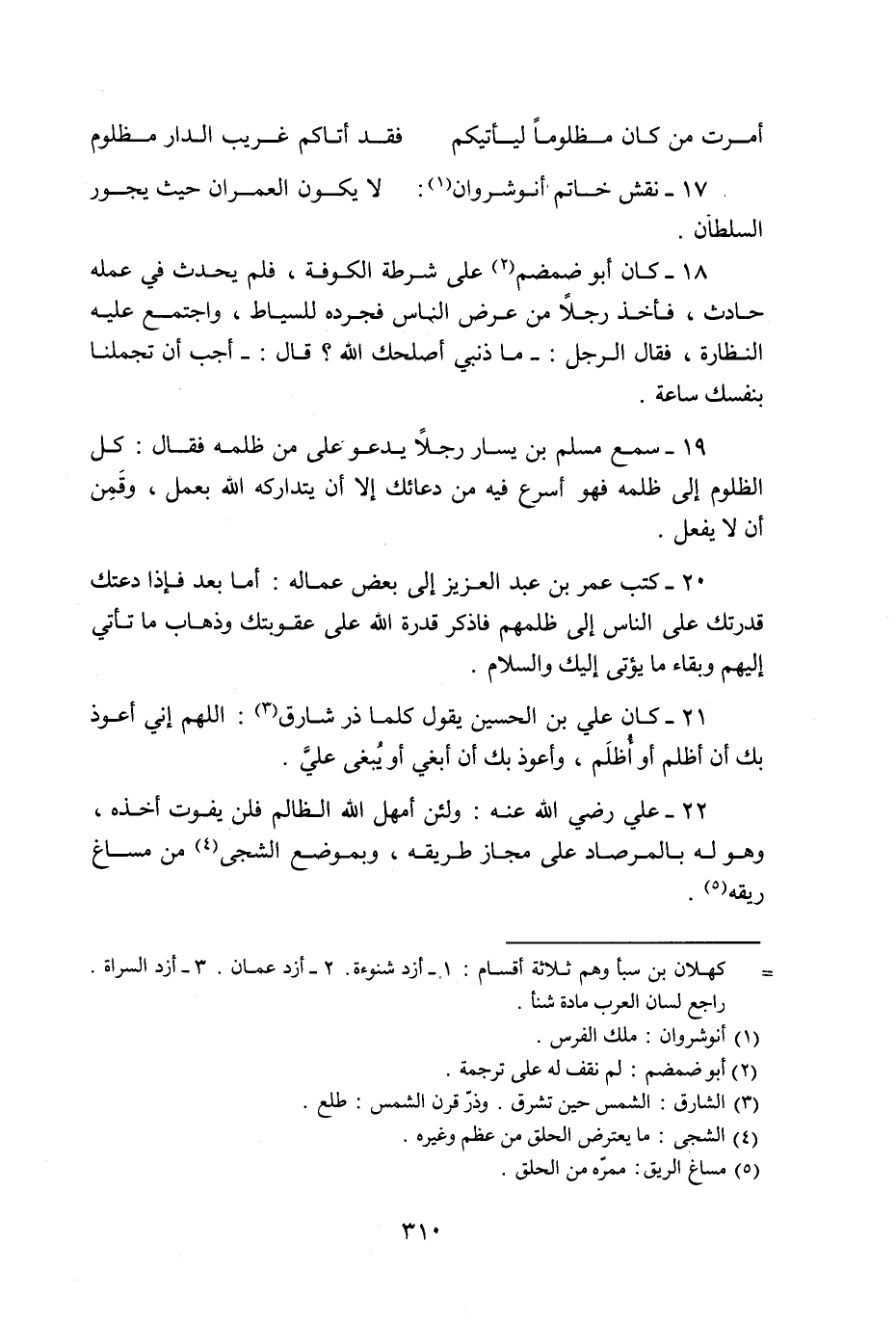 20- كتب عمر بن عبد العزيز إلى بعض عماله: أما بعد فإذا دعتك قدرتك على الناس إلى ظلمهم فاذكر قدرة الله على عقوبتك وذهاب ما تأتي إليهم وبقاء ما يؤتى إليك والسلام.