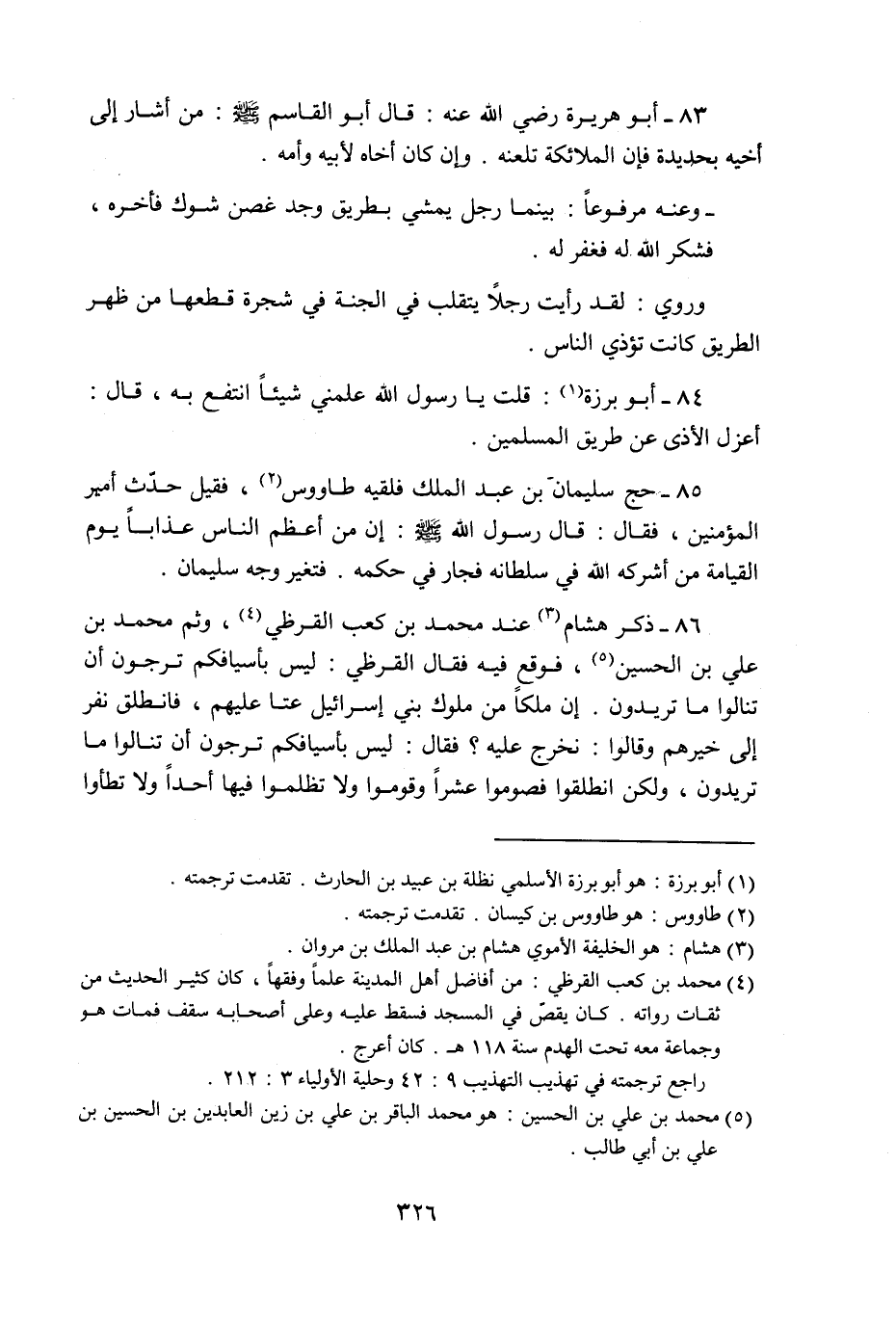 وروي: لقد رأيت رجلا يتقلب في الجنة في شجرة قطعها من ظهر الطريق كانت تؤذي الناس.