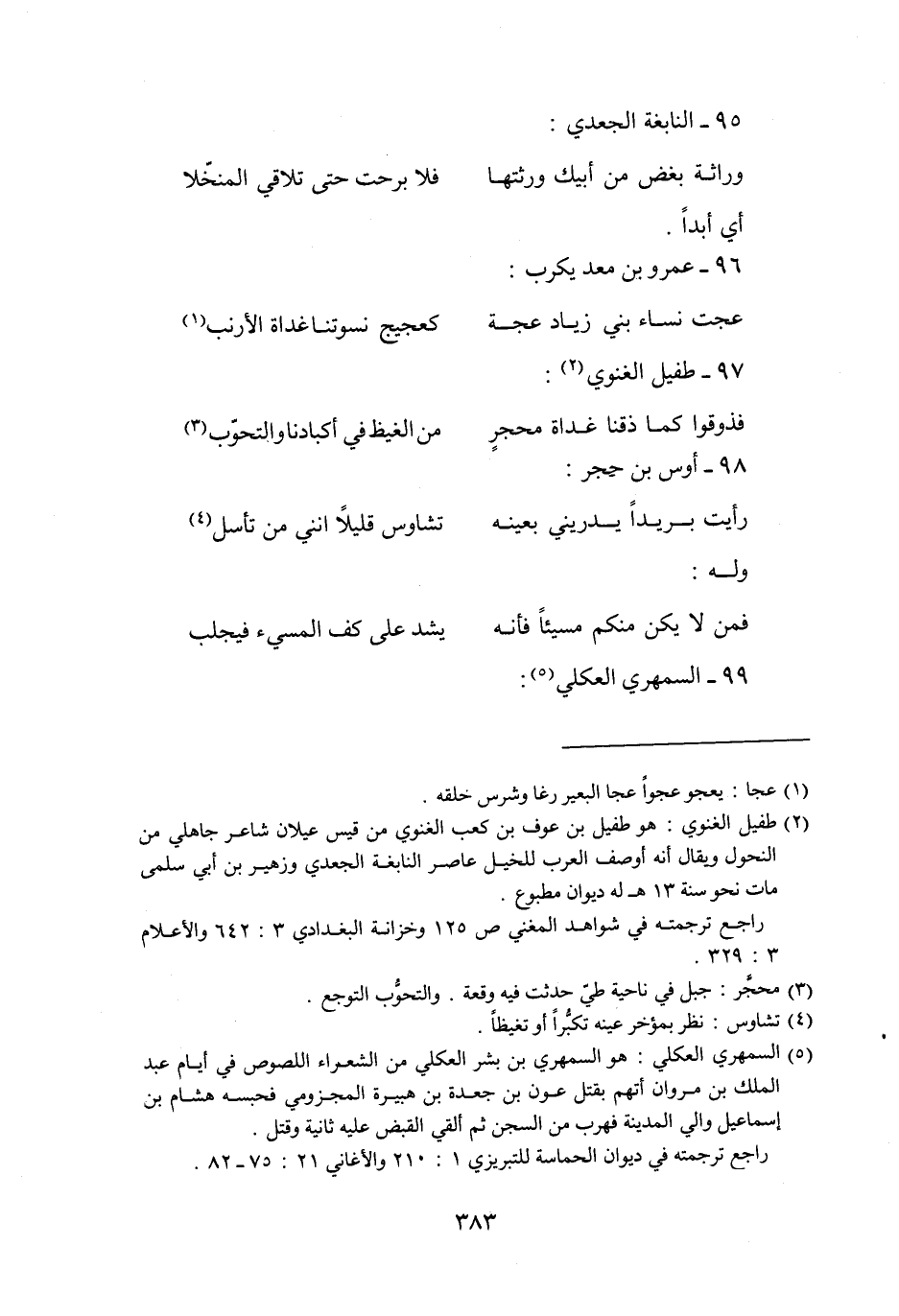 فذوقوا كما ذقنا غداة محجر ... من الغيظ في أكبادنا والتحوّب «3»