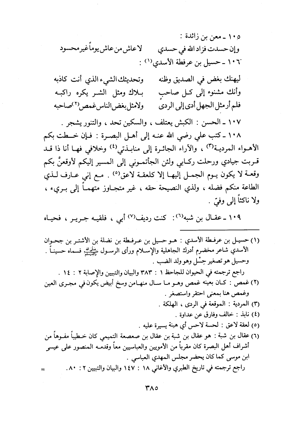 109- عقال بن شبه «6» : كنت رديف «7» أبي، فلقيه جرير، فحياه