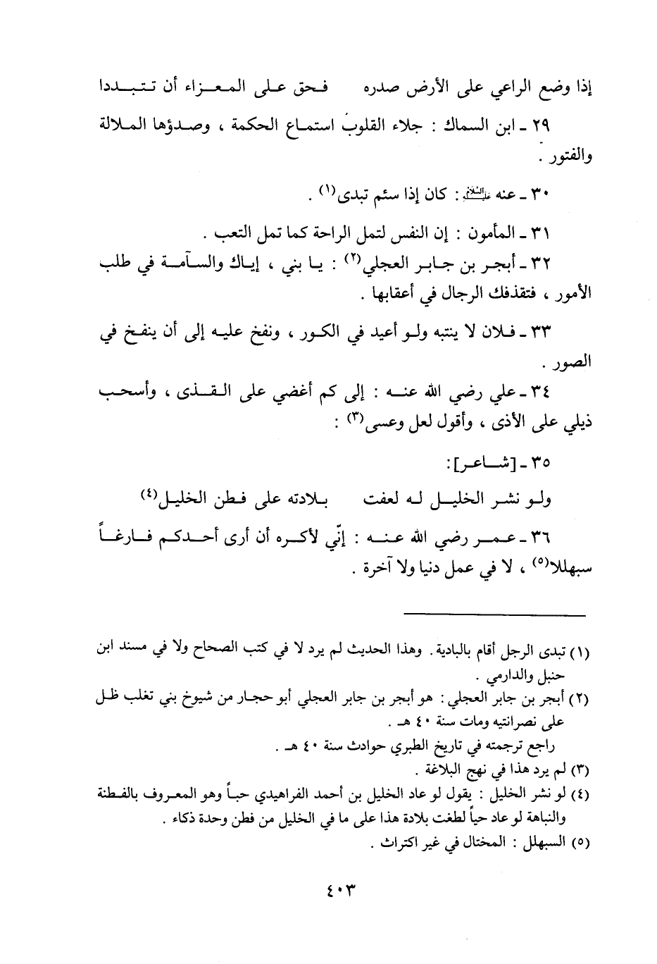 36- عمر رضي الله عنه: إنّي لأكره أن أرى أحدكم فارغا سبهللا «5»