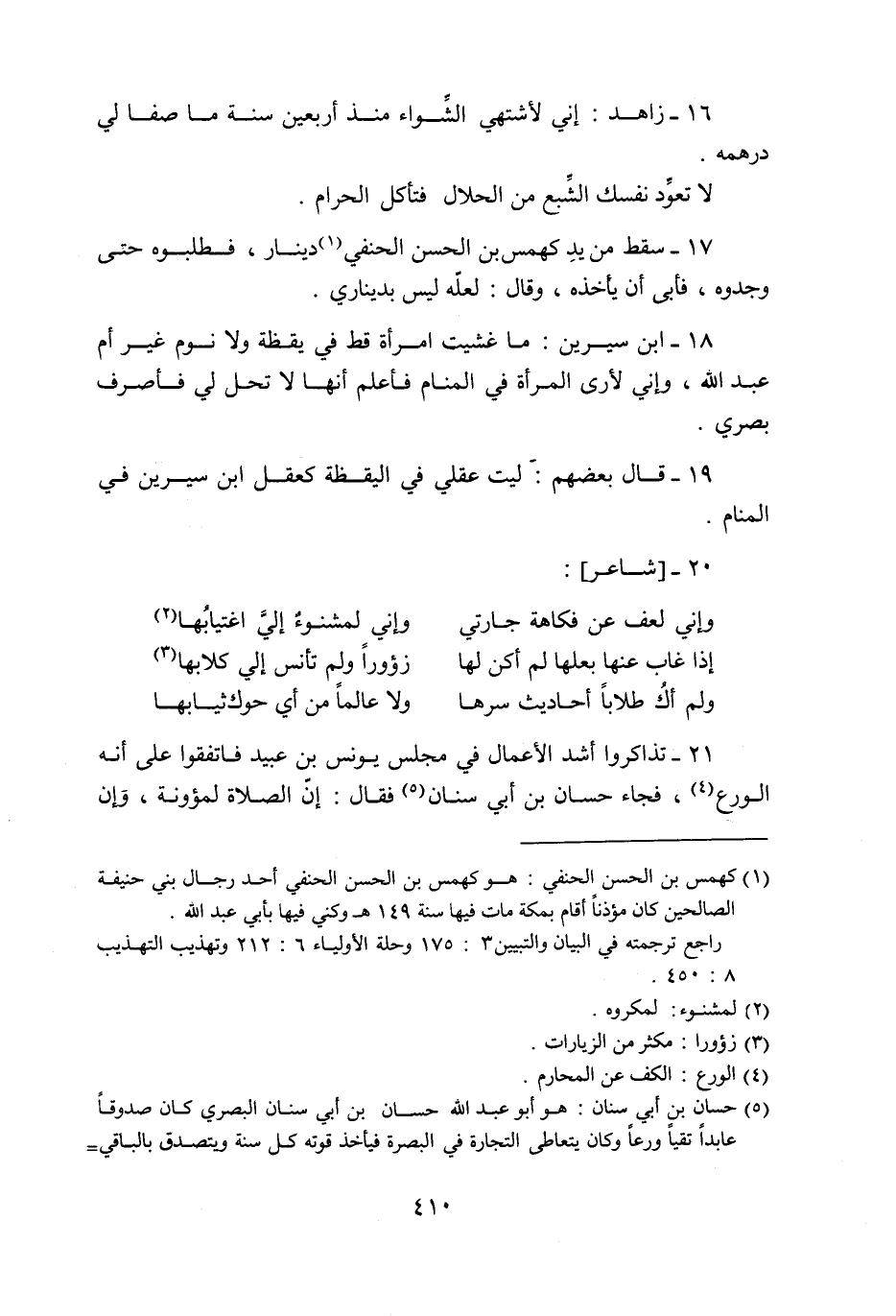 17- سقط من يد كهمس بن الحسن الحنفي «1» دينار، فطلبوه حتى وجدوه، فأبى أن يأخذه، وقال: لعلّه ليس بديناري.