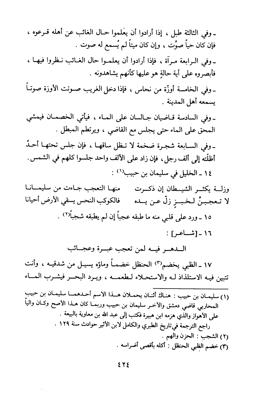 17- الظبي يخضم «3» الحنظل خضما وماؤه يسيل من شدقيه، وأنت تتبين فيه الاستلذاذ له والاستحلاء لطعمه، ويرد البحر فيشرب الماء