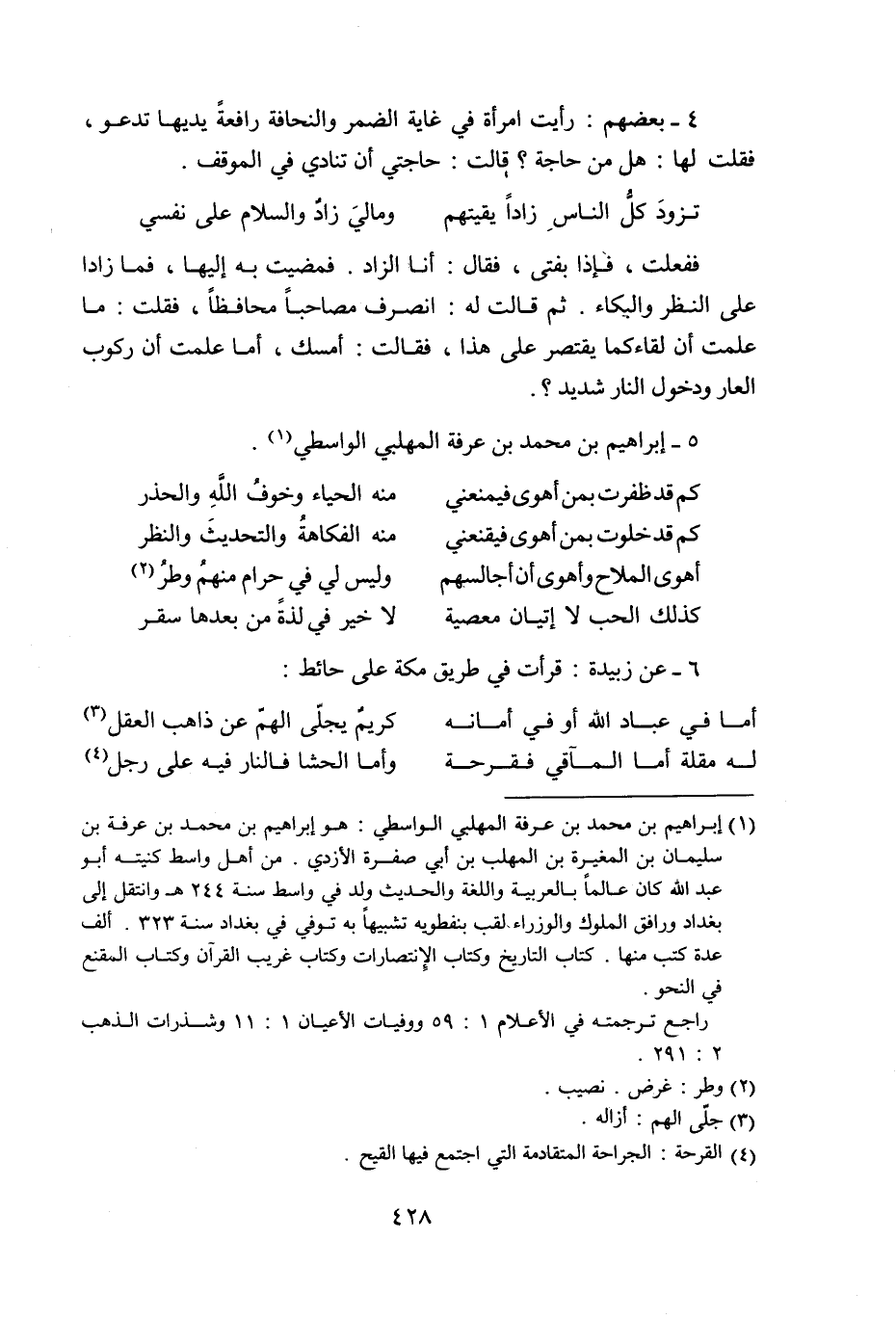 6- عن زبيدة: قرأت في طريق مكة على حائط: