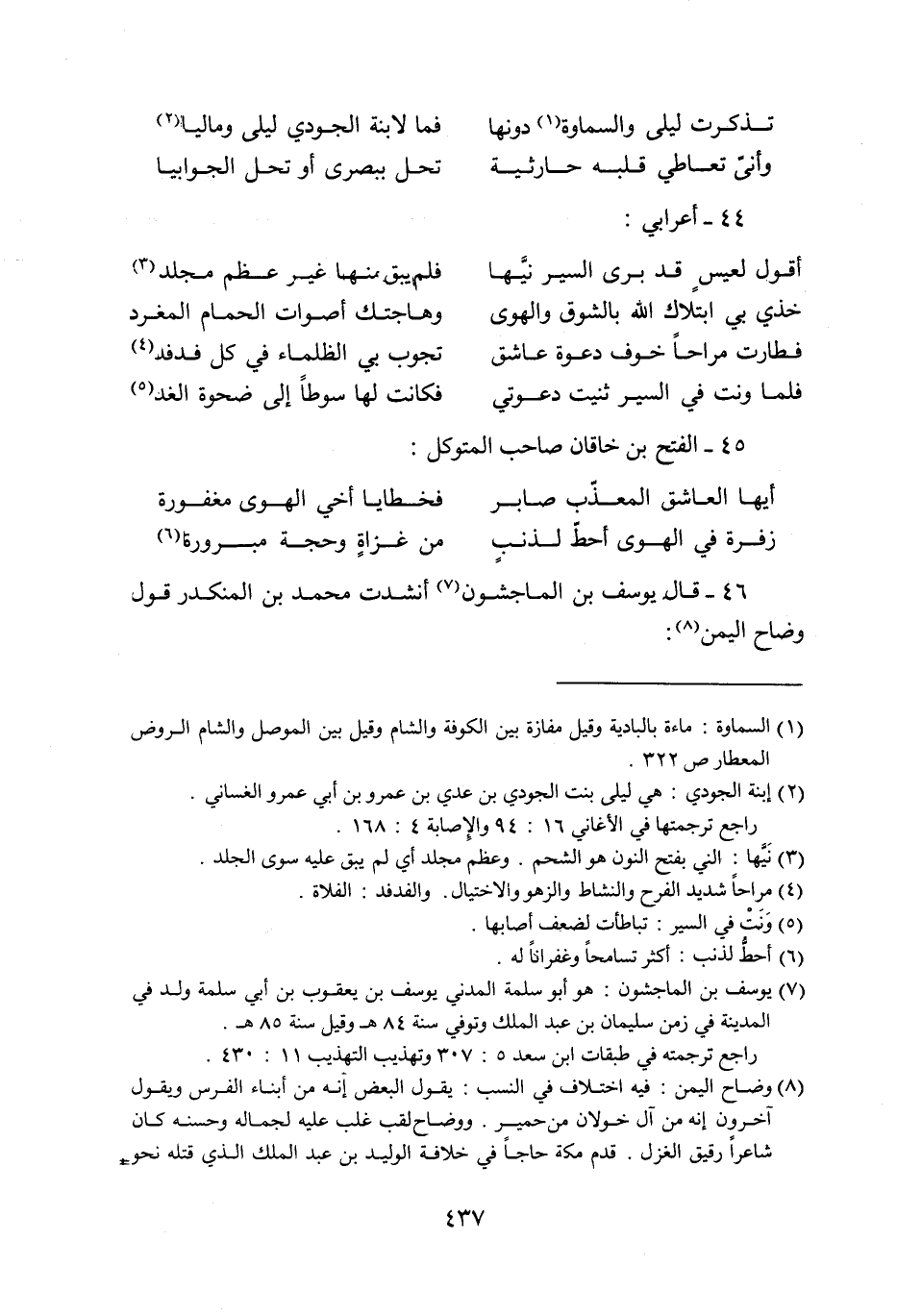 46- قال يوسف بن الماجشون «7» أنشدت محمد بن المنكدر قول وضاح اليمن «8» :