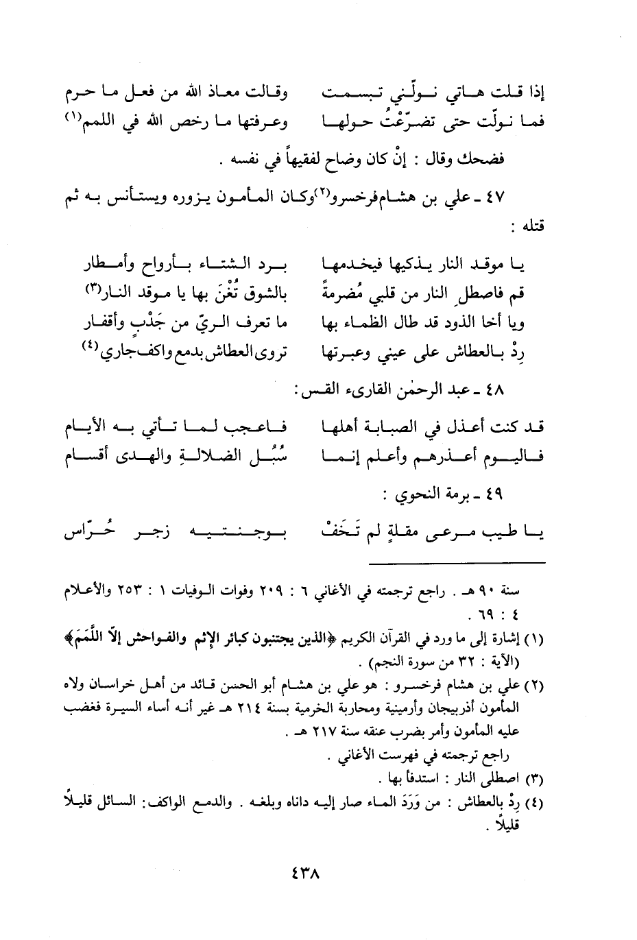 47- علي بن هشام فرخسرو «2» وكان المأمون يزوره ويستأنس به ثم قتله: