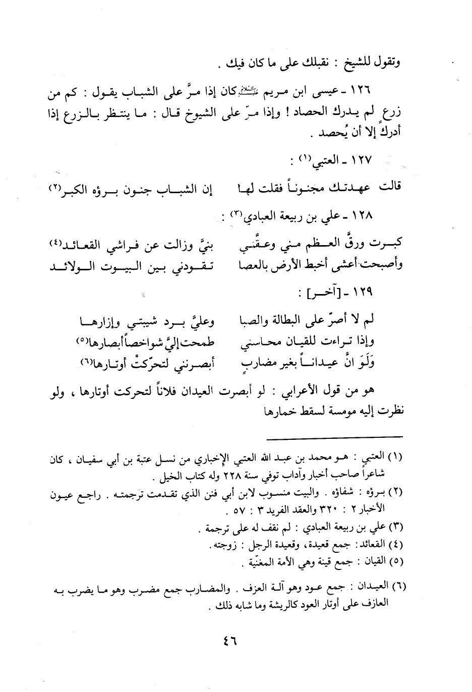كبرت ورقّ العظم مني وعقّني ... بنيّ وزالت عن فراشي القعائد «4»