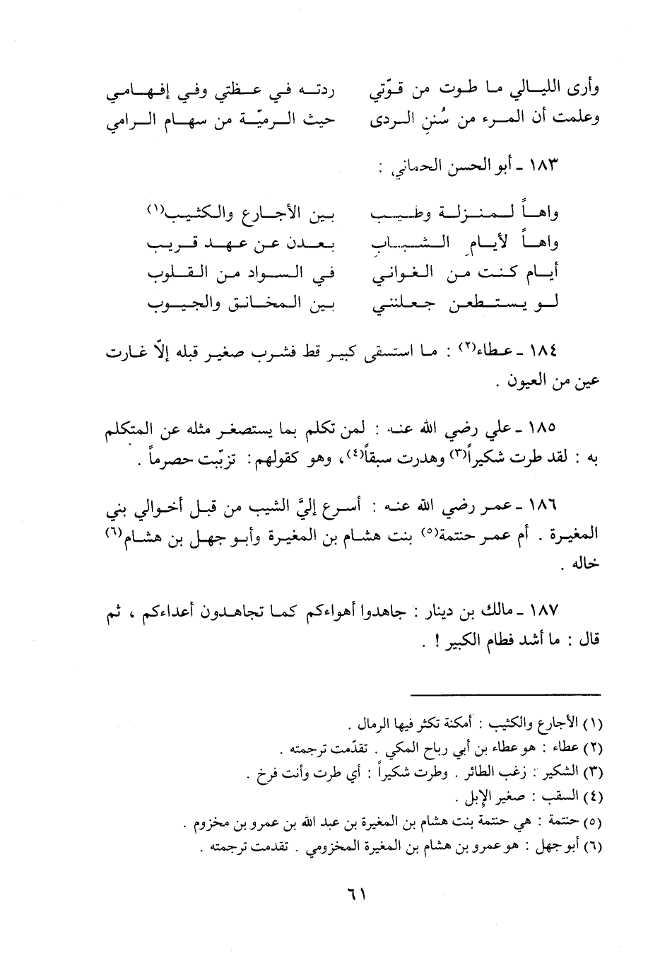 187- مالك بن دينار: جاهدوا أهواءكم كما تجاهدون أعداءكم، ثم قال: ما أشد فطام الكبير!.