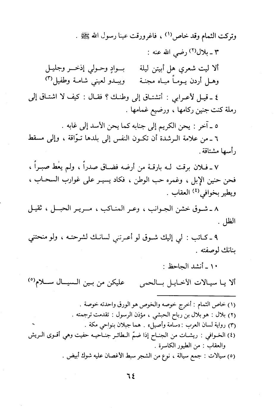 4- قيل لأعرابي: أتشتاق إلى وطنك؟ فقال: كيف لا اشتاق إلى رملة كنت جنين ركامها، ورضيع غمامها.