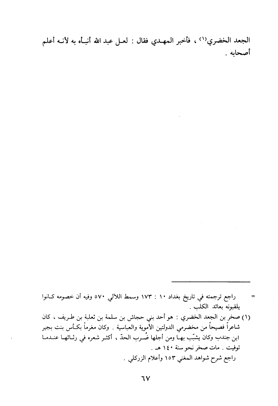 الجعد الخضري «1» ، فأخبر المهدي فقال: لعل عبد الله أنبأه به لأنه أعلم أصحابه.