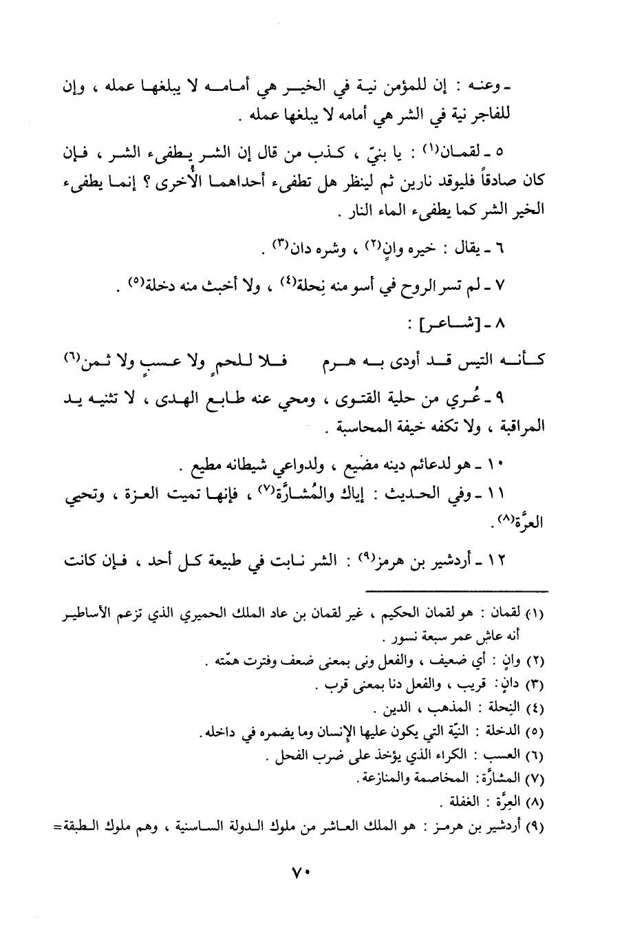 12- أردشير بن هرمز «9» : الشر نابت في طبيعة كل أحد، فإن كانت