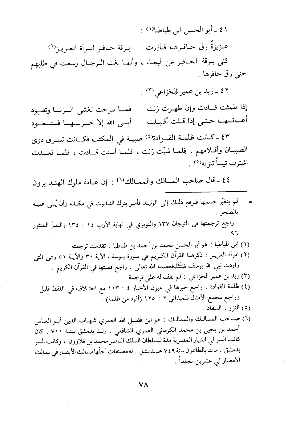 43- كانت ظلمة القوادة «4» صبية في المكتب فكانت تسرق دوى الصبيان وأقلامهم، فلما شبّت زنت، فلما أسنت قادت، فلما قعدت اشترت تيسا تنزيه «5» .