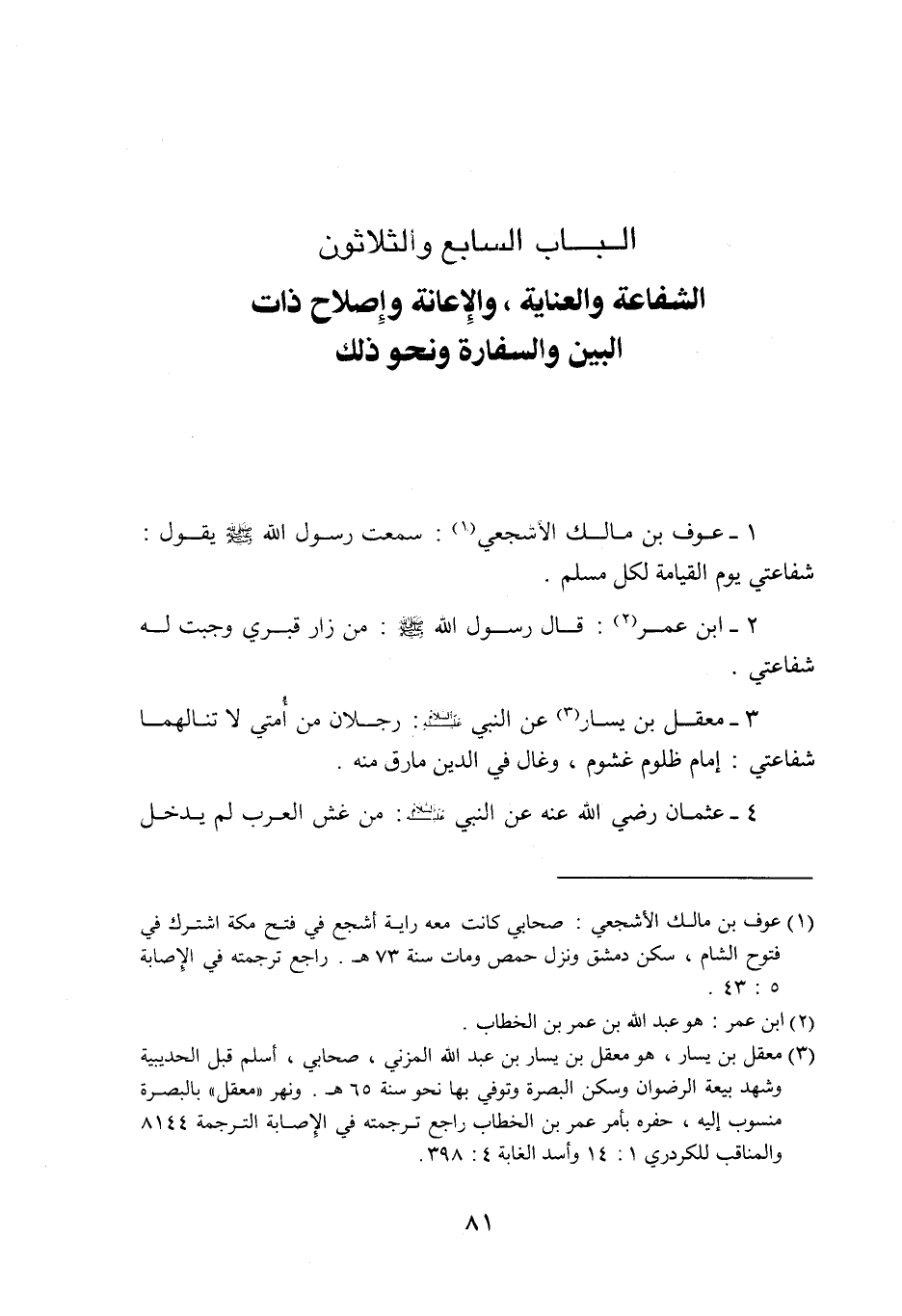 الباب السابع والثلاثون الشفاعة والعناية، والإعانة وإصلاح ذات البين والسفارة ونحو ذلك