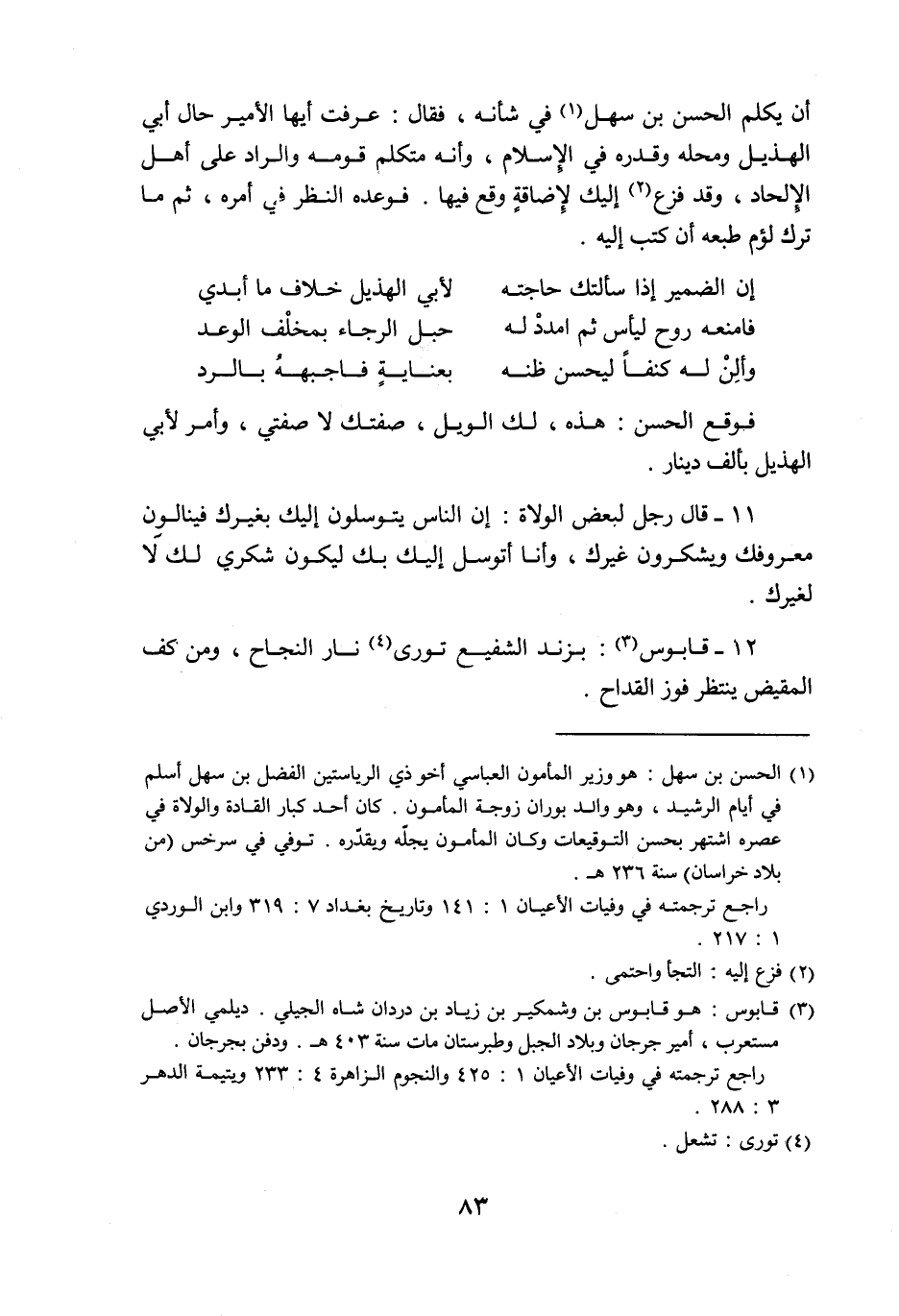 12- قابوس «3» : بزند الشفيع تورى «4» نار النجاح، ومن كف المقيض ينتظر فوز القداح.