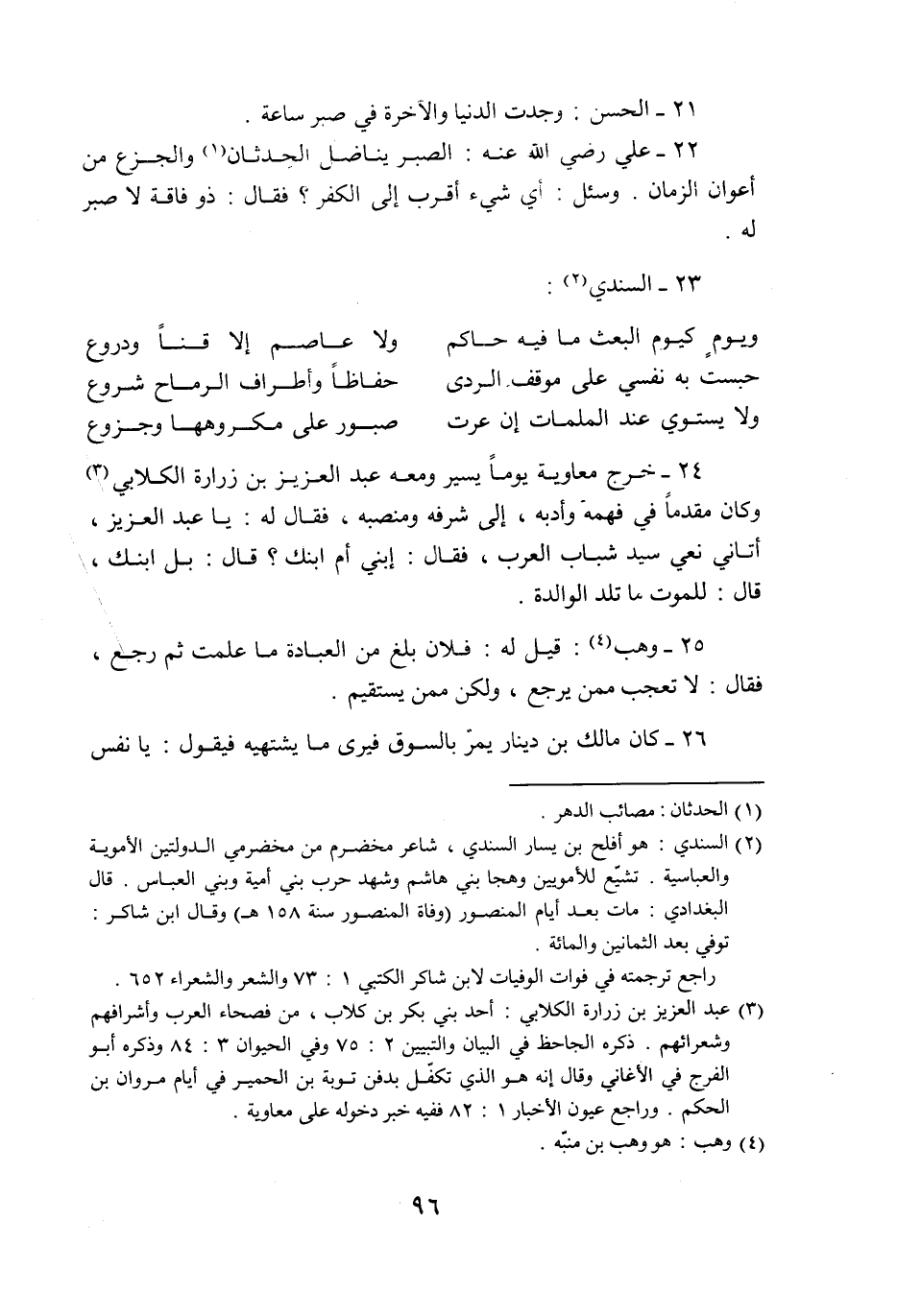 25- وهب «4» : قيل له: فلان بلغ من العبادة ما علمت ثم رجع، فقال: لا تعجب ممن يرجع، ولكن ممن يستقيم.