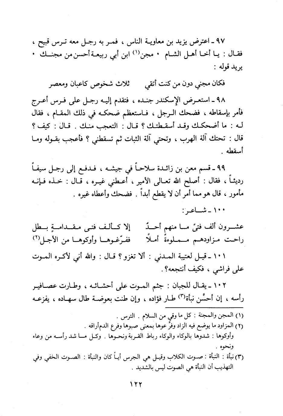 101- قيل لعتيبة المدني: ألا تغزو؟ قال: والله أني لأكره الموت على فراشي، فكيف أنتجعه؟.