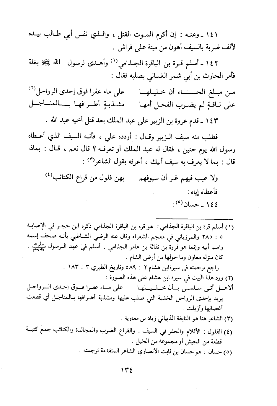 143- قدم عروة بن الزبير على عبد الملك بعد قتل أخيه عبد الله.
