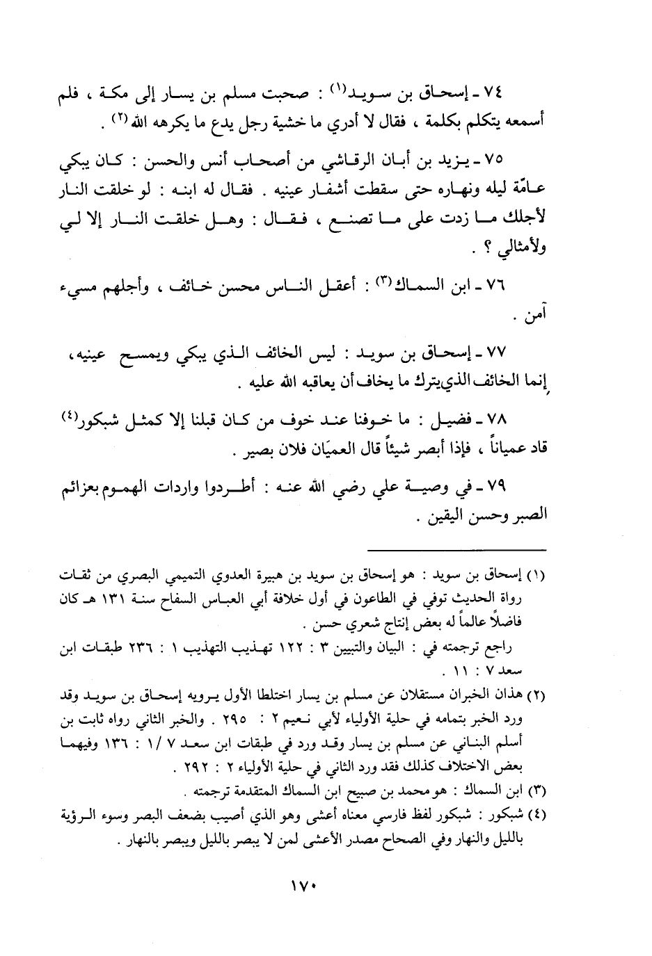 77- إسحاق بن سويد: ليس الخائف الذي يبكي ويمسح عينيه، إنما الخائف الذي يترك ما يخاف أن يعاقبه الله عليه.