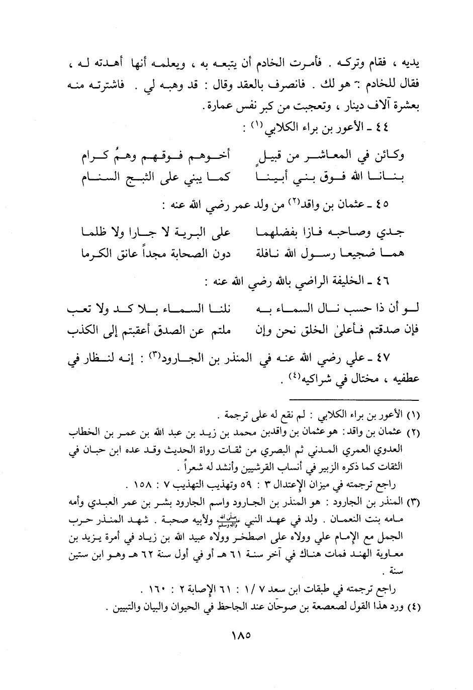 47- علي رضي الله عنه في المنذر بن الجارود «3» : إنه لنظار في عطفيه، مختال في شراكيه «4» .