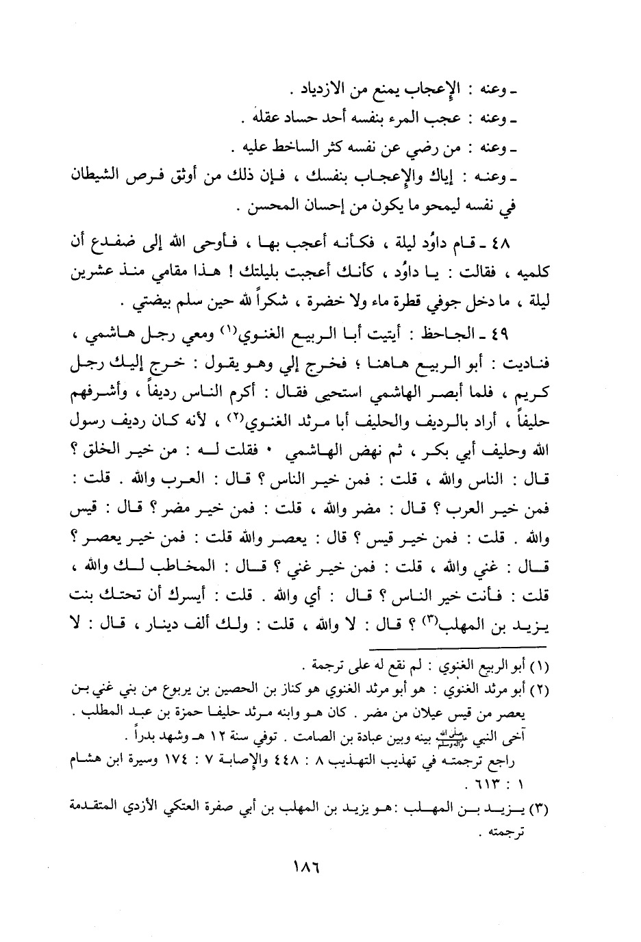 49- الجاحظ: أيتيت أبا الربيع الغنوي «1» ومعي رجل هاشمي، فناديت: أبو الربيع هاهنا؛ فخرج إلي وهو يقول: خرج إليك رجل كريم، فلما أبصر الهاشمي استحيى فقال: أكرم الناس رديفا، وأشرفهم حليفا، أراد بالرديف والحليف أبا مرثد الغنوي «2» ، لأنه كان رديف رسول الله وحليف أبي بكر، ثم نهض الهاشمي. فقلت له: من خير الخلق؟