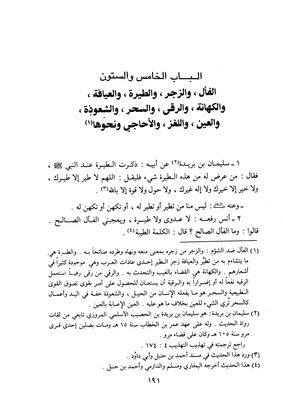 الباب الخامس والستون الفأل، والزجر، والطيرة، والعيافة، والكهانة، والرقى، والسحر، والشعوذة، والعين، واللغز، والأحاجي ونحوها «1»